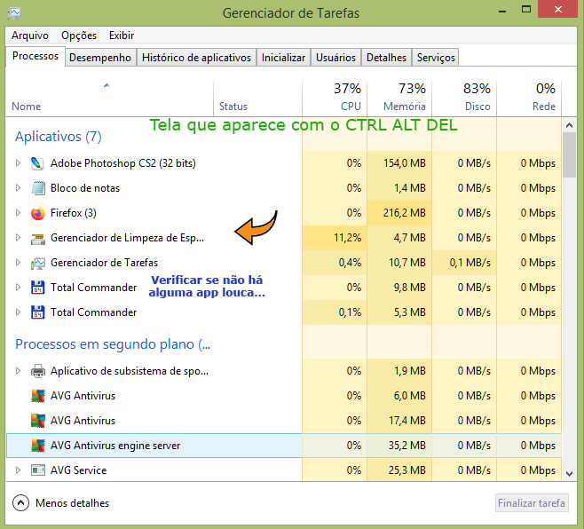 Às vêzes pode estar rodando em Processos de Segundo Plano...
